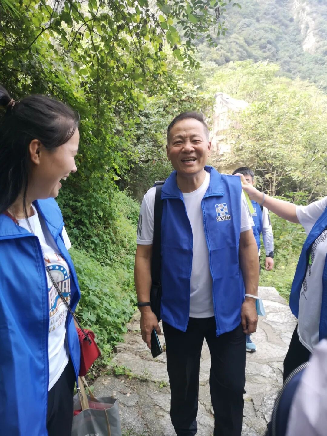 到达翠华山景区,在门口举行简短的活动启动仪式,合影留念后进入山门开展活动。